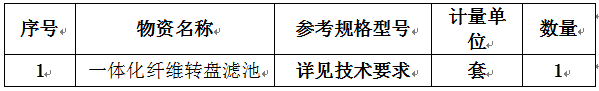 本次招標(biāo)為行唐縣第二污水處理廠大修項(xiàng)目一體化纖維轉(zhuǎn)盤濾池采購(gòu)。采買單位為河北誠(chéng)乾環(huán)保工程有限公司,資金來(lái)自企業(yè)自籌,出資比例為100%?,F(xiàn)采用邀請(qǐng)招標(biāo)方式對(duì)一體化纖維轉(zhuǎn)盤濾池進(jìn)行招采,特邀請(qǐng)各單位參加投標(biāo)。